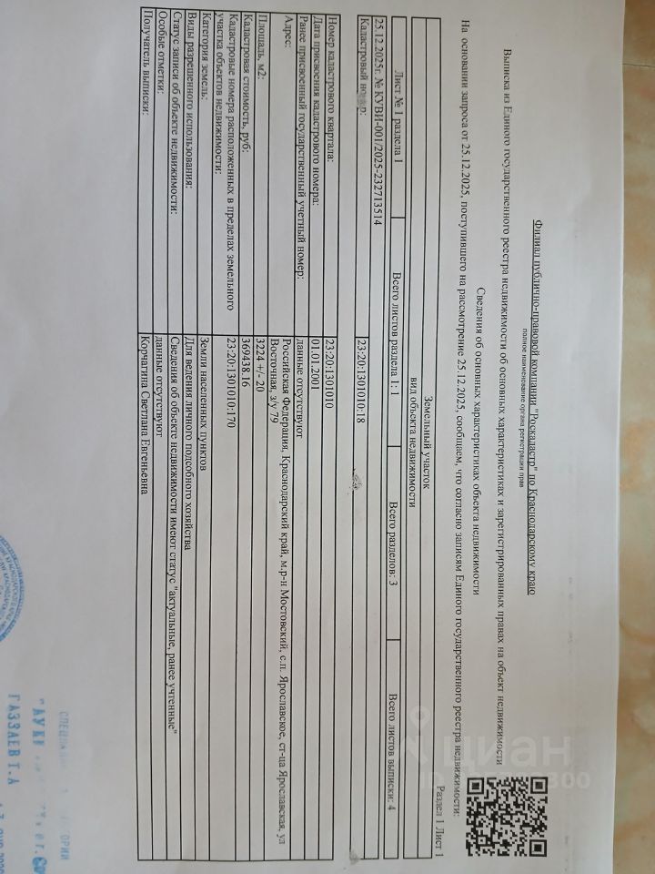Станица находится в 47км к северо-западу от районного центра -пгт.Мостовской и в 145км. к юго-востоку от г.Краснодар и 40км г.Майкоп-респ.Адыгея Граничит с землями насел.пунктов Махошевская,Кужорская,Трехречный. Преимуществом этого участка является то что там соседи только с одной стороны(тоже я собственник,один большой поделён на 4уч по 12сот),а с другой граница станицы и природа на которой уже никто не построеться-отличный вариант для тех кто любит уединение и тишину,,, или для ведения сельского хозяйства,,, свет по дороге,газ тоже ведут по улице,вода скважину нужно бурить-центрального водопровода нет. также на участке сохранился частично фундамент,стоял дом,с кадастра не снят,можно восстановить без разрешения на строительство-смотрите фото! в станице находятся термальные источники-3 организации.в центре станицы строиться многофункциональный спортивный комплекс. Также в станице находятся:поликлиника,школа,детский сад,магазины,автостанция дорога к участку с трассы не асфальтированная-гравийка. Нужно чистить участок!межевание есть. колодец на соседних участках стоит. живу в другом городе поэтому по адресу ул.Восточная,79 можно проехать и посмотреть самостоятельно!