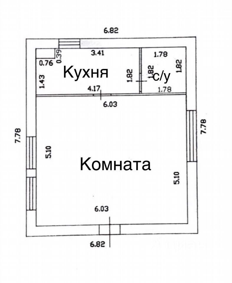 В доме выполнена свободная планировка, отдельная кухня, сан узел и просторная комната с тремя окнами, можно разделить.