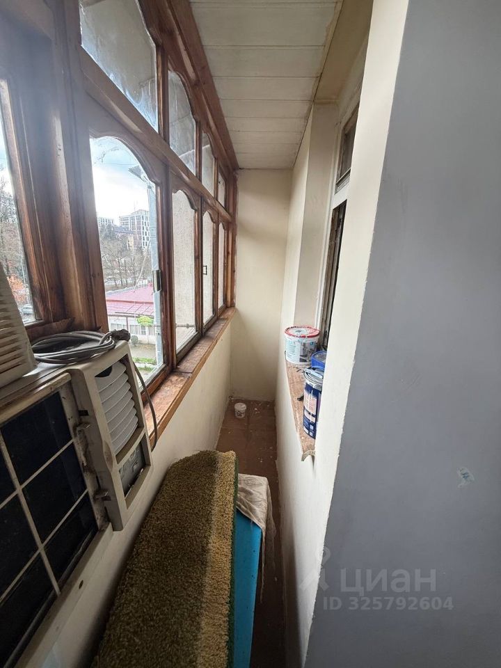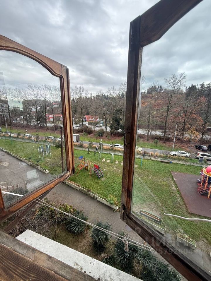 Сдаётся двухкомнатная квартира в посёлке Дагомыс, по адресу Батумское шоссе, 63. Общая площадь — 26 кв. м, жилая — 18 кв. м, кухня — 4 кв. м. Квартира расположена на 4 этаже 9-этажного монолитного дома. Высота потолков составляет 2,7 метра.