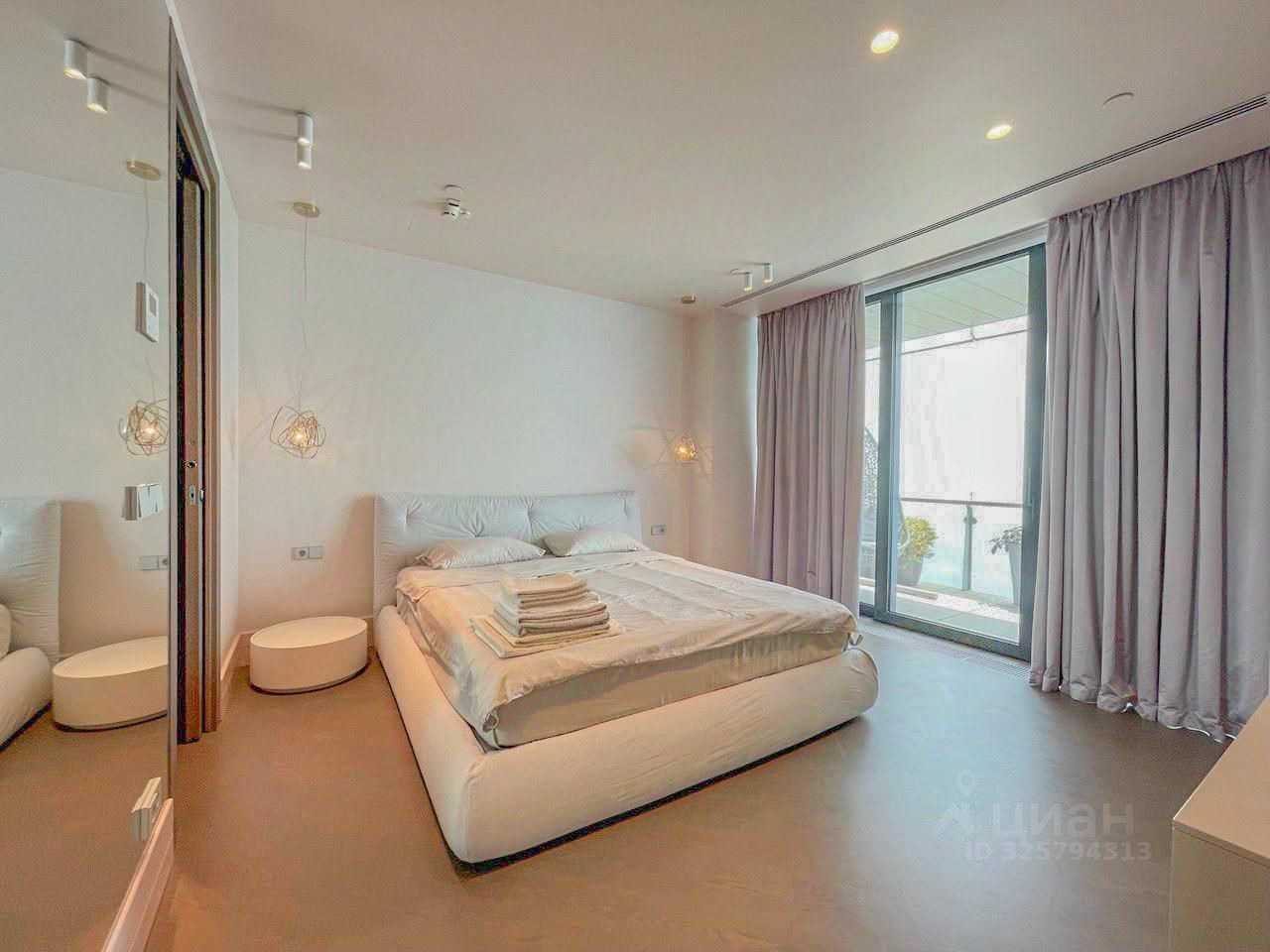 Апартамент расположен на 24 этаже, из панорамных окон открывается прямой вид на море. Планировка включает просторную спальню, отдельную гардеробную, функциональную зону отдыха. Выполнен дизайнерский ремонт, апартамент полностью укомплектован мебелью и техникой премиального уровня — готов к комфортному проживанию без дополнительных вложений.