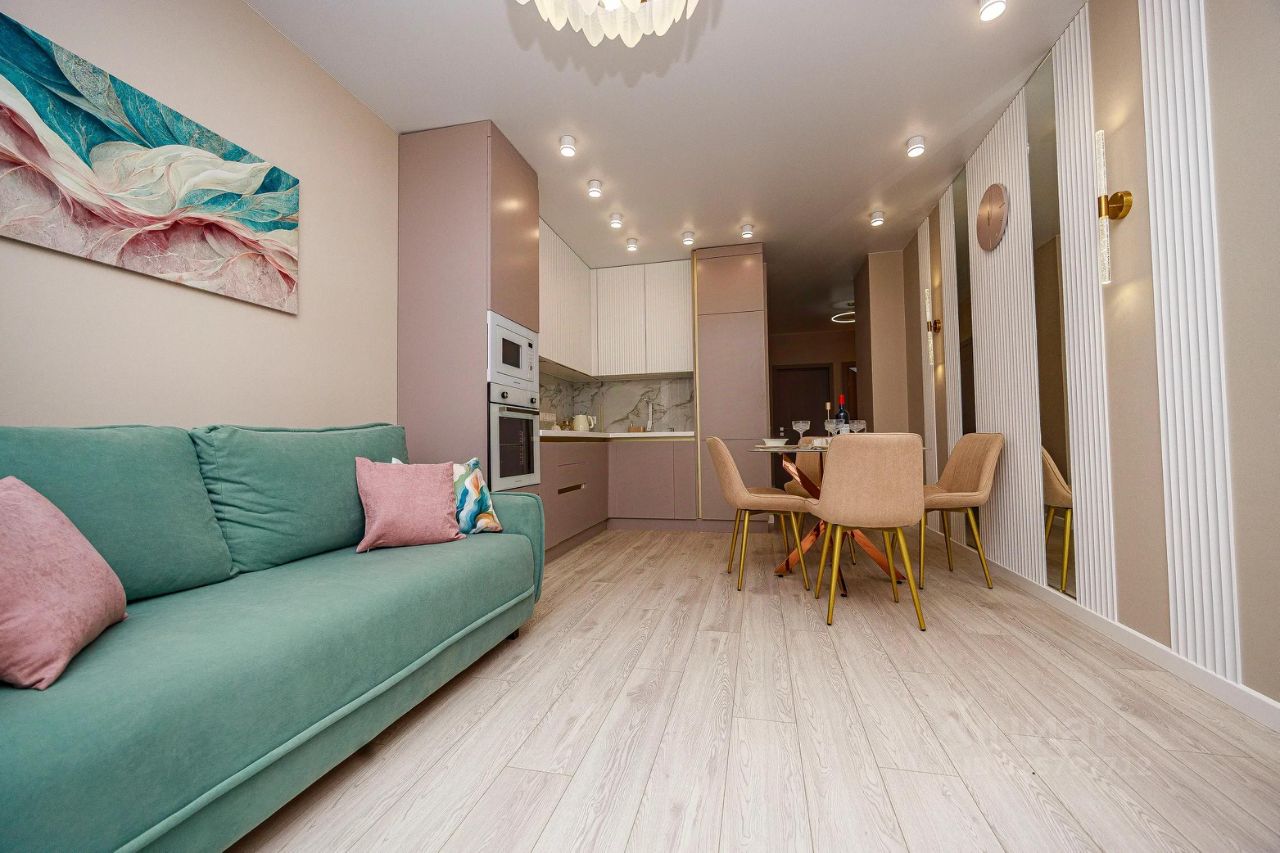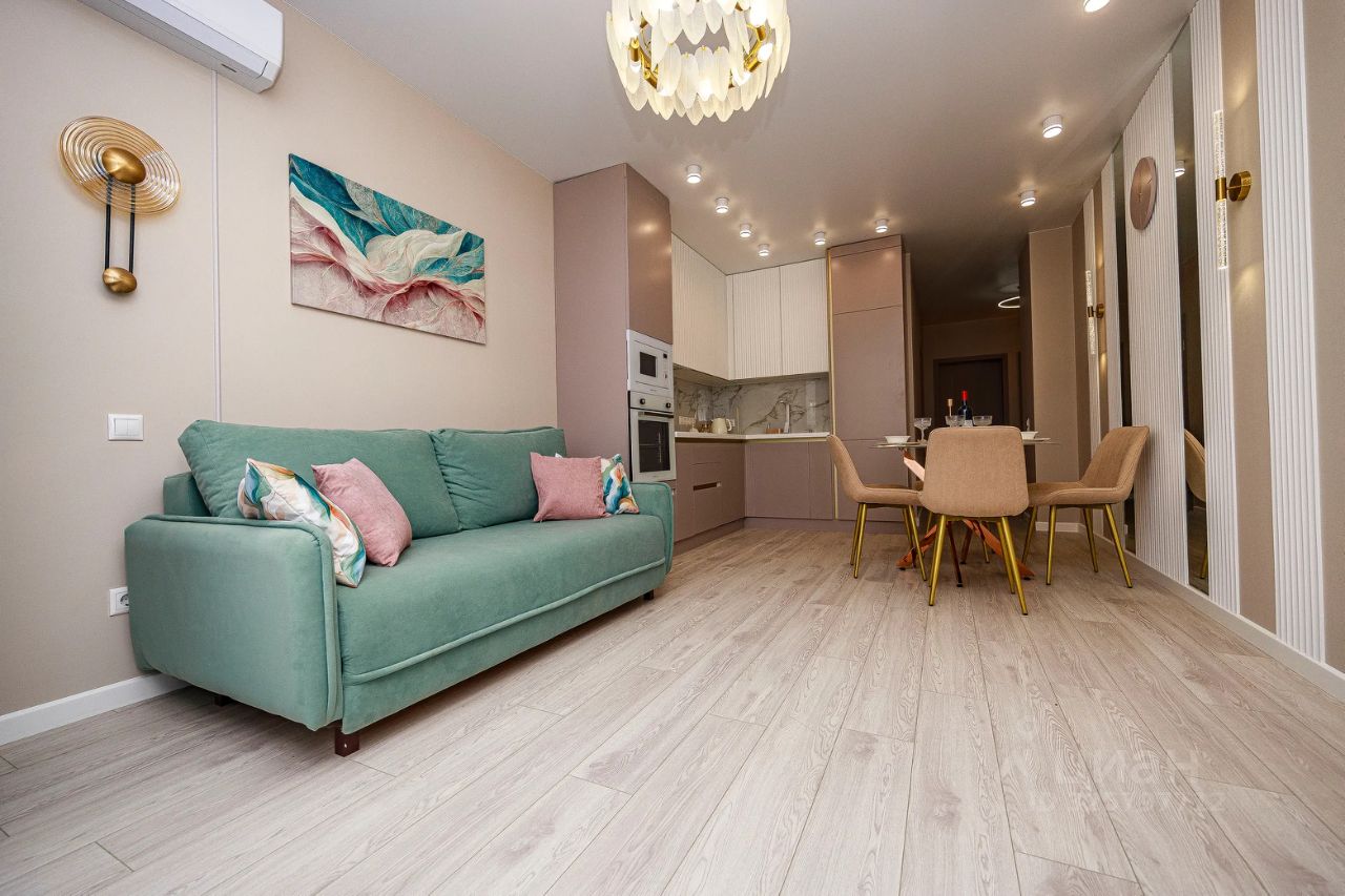 сдам новую очень уютную квартиру ! Дизайнерский ремонт ! В квартире есть все от постельного премиум класса до посуды ! в сан узле и лоджии теплые полы , 3 шкафа больших для хранения вещей , два рабочих уютных места ! две кровати 180 с хорошим матрасами ! на кухне диван раскладной ! барная стойка на кухне с видом моря ! вся бытовая техника ( посудомойка, пылесос , гладилка и тд )