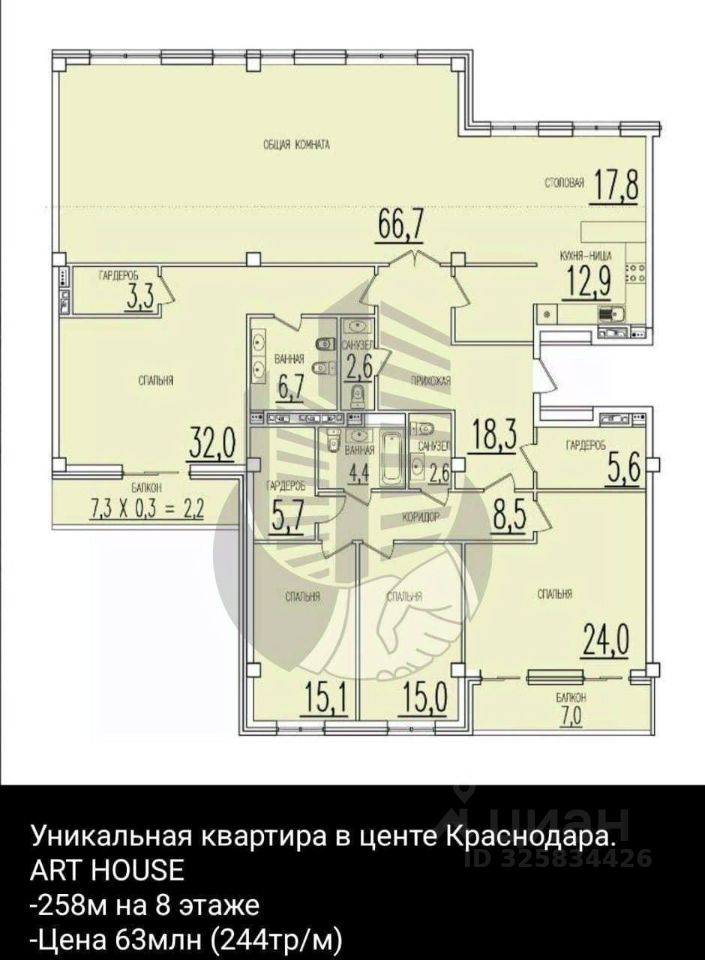 Роскошная жизнь в сердце города: Квартира в ЖК ''Арт Хаус'' ждет своего владельца! Мечтаете о премиальном комфорте и уединении в самом центре города? Ваша мечта осуществится в элитном жилом комплексе ''Арт Хаус''! Представляем вашему вниманию эксклюзивную квартиру, расположенную в престижном районе с развитой инфраструктурой. Здесь каждый элемент создан для вашего комфорта и удовольствия: Уникальная архитектура и изысканная отделка входной группы подчеркнут ваш безупречный вкус. Закрытая территория и круглосуточная охрана обеспечат вашу безопасность и приватность. Подземный паркинг избавит вас от забот о парковке и сохранит ваш автомобиль в идеальном состоянии. Малое количество квартир гарантирует тишину и спокойствие, создавая атмосферу клубного дома. Уютный функциональный дворик станет вашим личным оазисом для отдыха и релаксации. Потрясающий вид на храм и реку Кубань будет радовать вас каждый день, наполняя жизнь гармонией и вдохновением.