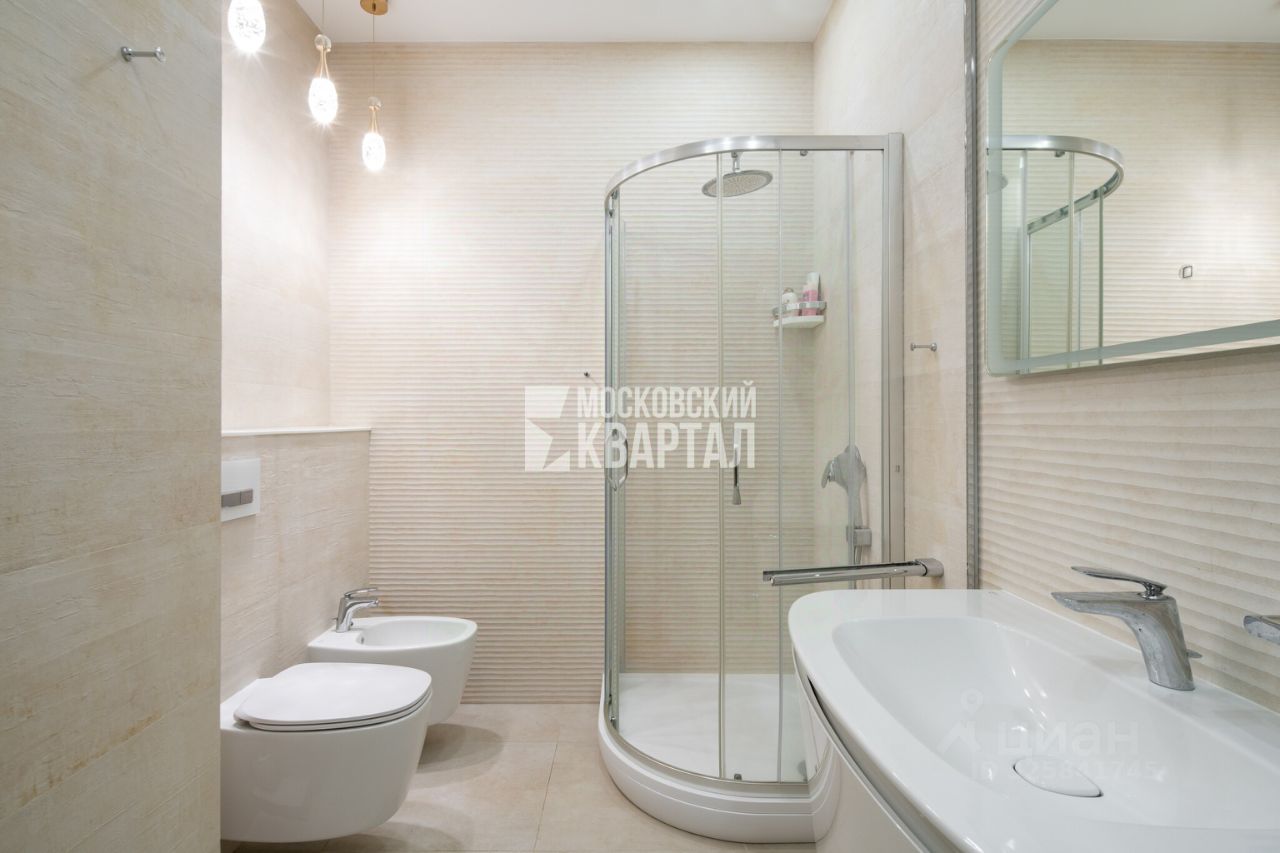 Планировочное решение функциональное и выверенное: две изолированные спальни, кабинет, отдельная гостевая комната, кухня и гостиная. Предусмотрены два санузла и гардеробная — комфортный формат для семьи или длительного проживания.