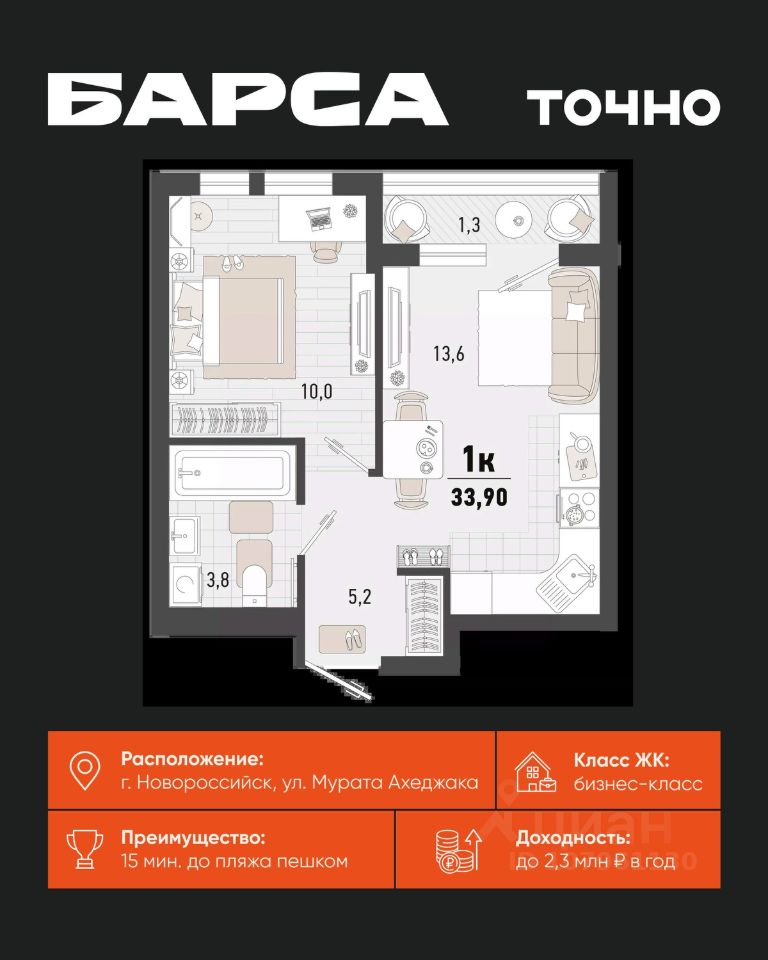 продам 1-к, Новороссийск8 280 346 ₽