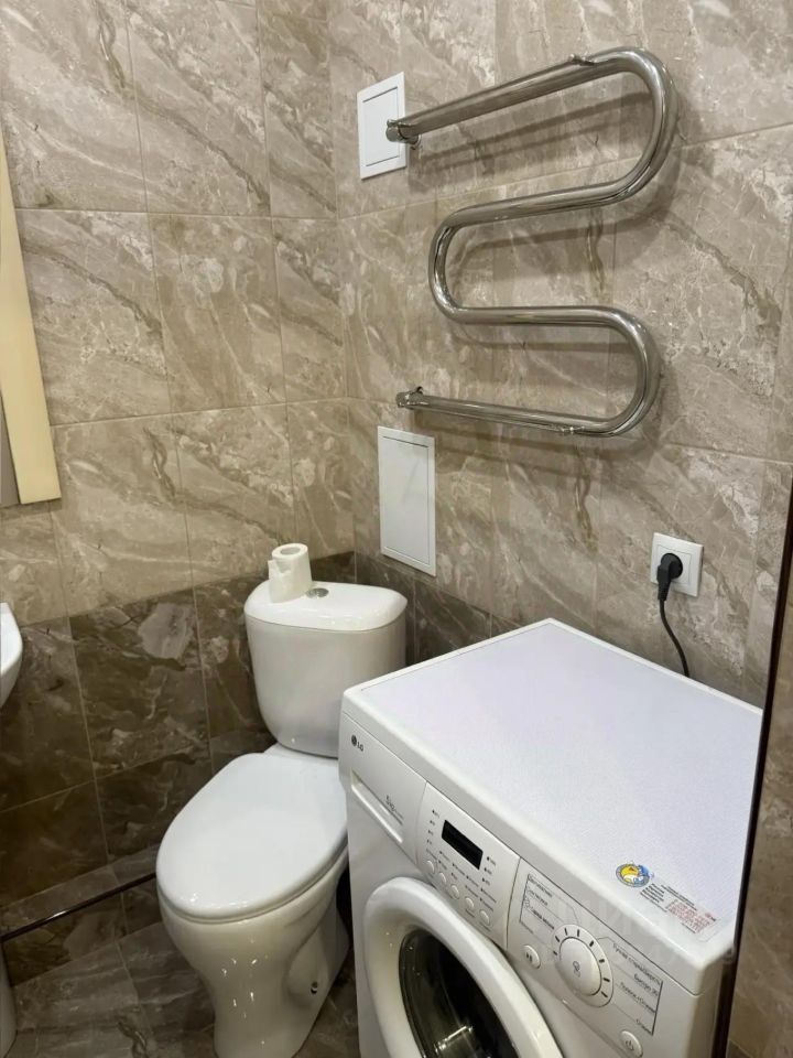 Санузел совмещенный, оборудован современной сантехникой и стиральной машиной. Из окон открывается приятный вид на зеленый двор с детской площадкой. В подъезде есть пассажирский и грузовой лифты, а также мусорная площадка с раздельными контейнерами.