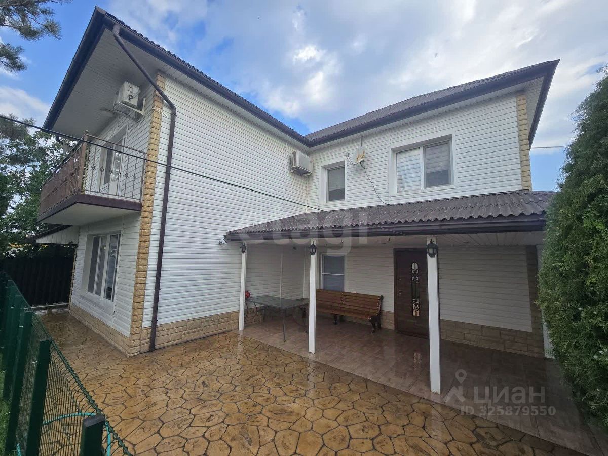 Двухэтажный жилой дом 2013 года постройки общей площадью 137,2 кв. м расположен в ДНТ ''Южное'' в 5 км от Анапы. Объект представляет собой комплекс из трех капитальных строений на одном угловом участке с двумя фасадами. Основной дом выполнен с качественной отделкой в светлых тонах, на полу уложен ламинат. Планировка первого этажа включает просторную кухню-гостиную и санузел, на втором этаже находятся три изолированные спальни и второй санузел. Все центральные коммуникации подключены, включая газовое отопление. На территории расположены два дополнительных строения. Первое — одноэтажный жилой дом площадью 100 кв. м с готовым ремонтом и мебелью, подходящий для проживания или сдачи в аренду.