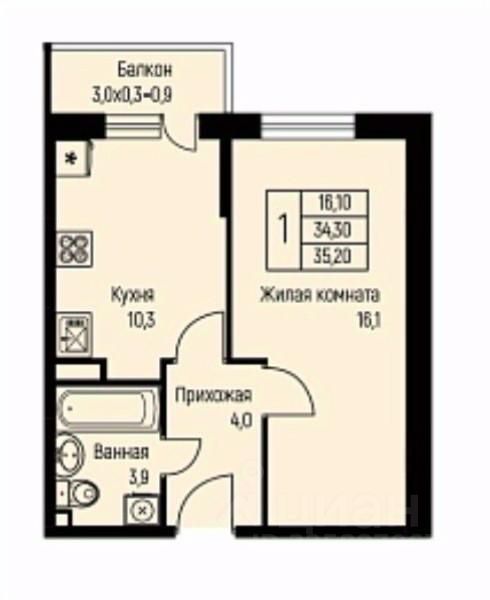 Преимущества квартиры: Площадь: 35,1 кв.