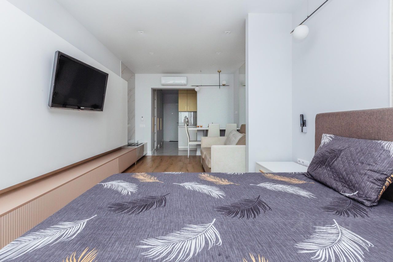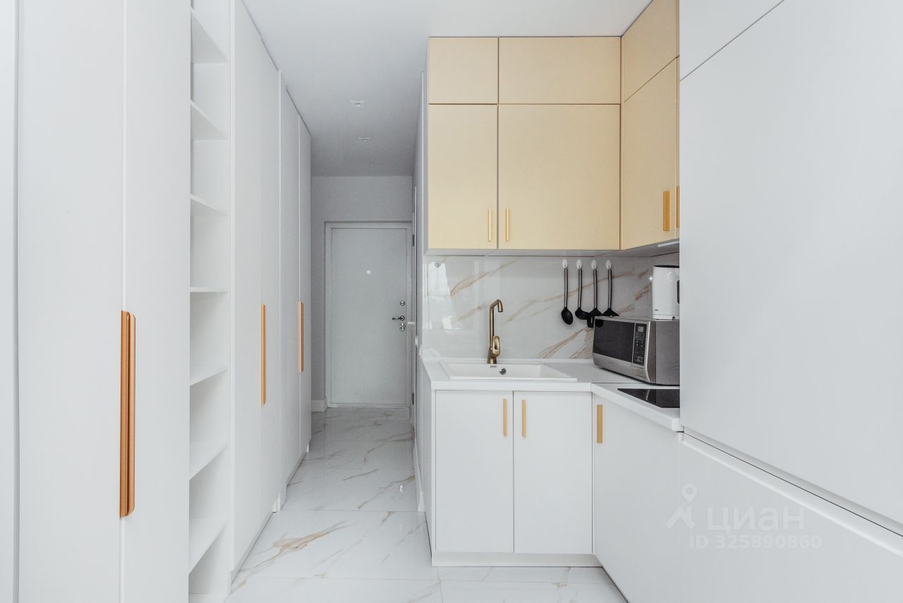 Продается стильная студия в современном доме 2021 года постройки. Квартира расположена на 5 этаже 22-этажного монолитного дома. Общая площадь студии составляет 35 кв. м, жилая площадь — 25 кв. м, а кухня занимает 5 кв. м. Высокие потолки 2.7 метра создают ощущение простора и добавляют света.