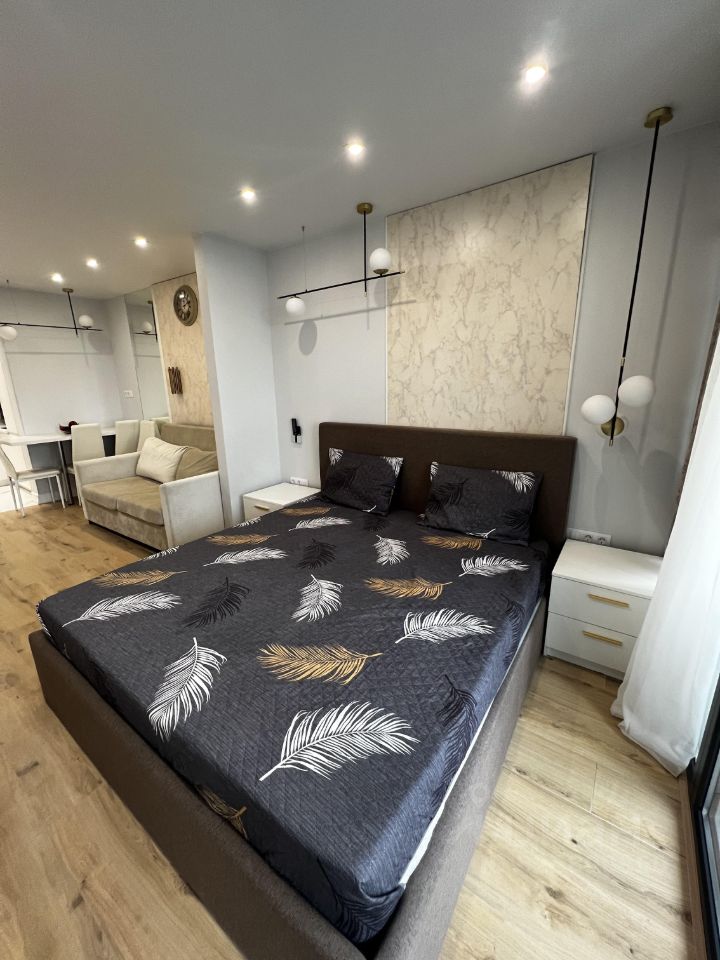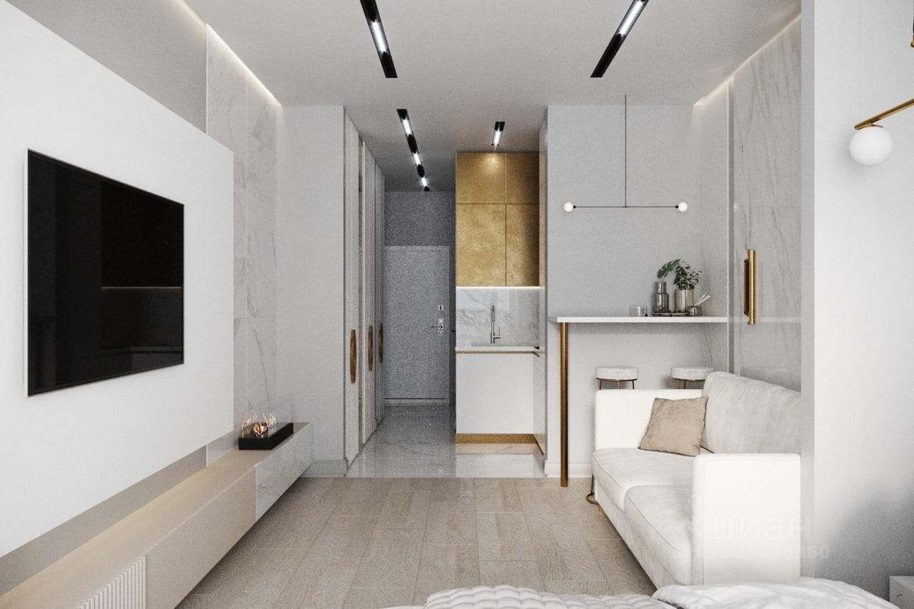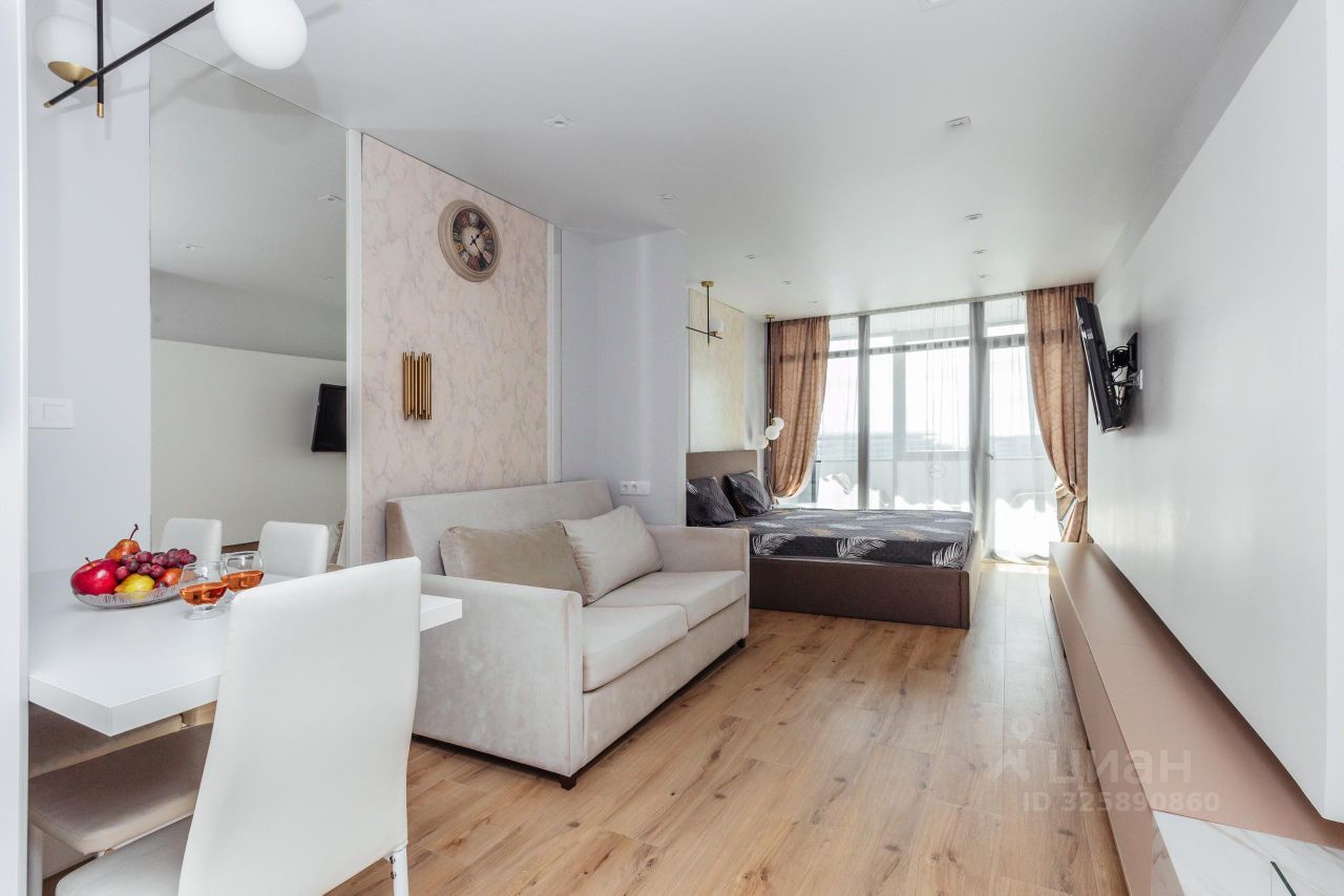 В квартире выполнен дизайнерский ремонт, что делает пространство уютным и современным. Планировка студии позволяет удобно организовать зону отдыха и рабочее место. В совмещенном санузле установлена современная сантехника, а окна выходят во двор, обеспечивая тишину и спокойствие. Также есть балкон, где можно наслаждаться свежим воздухом.