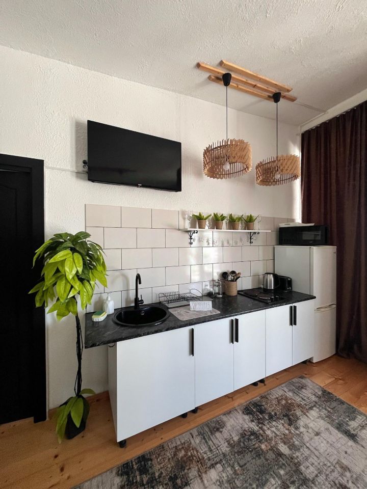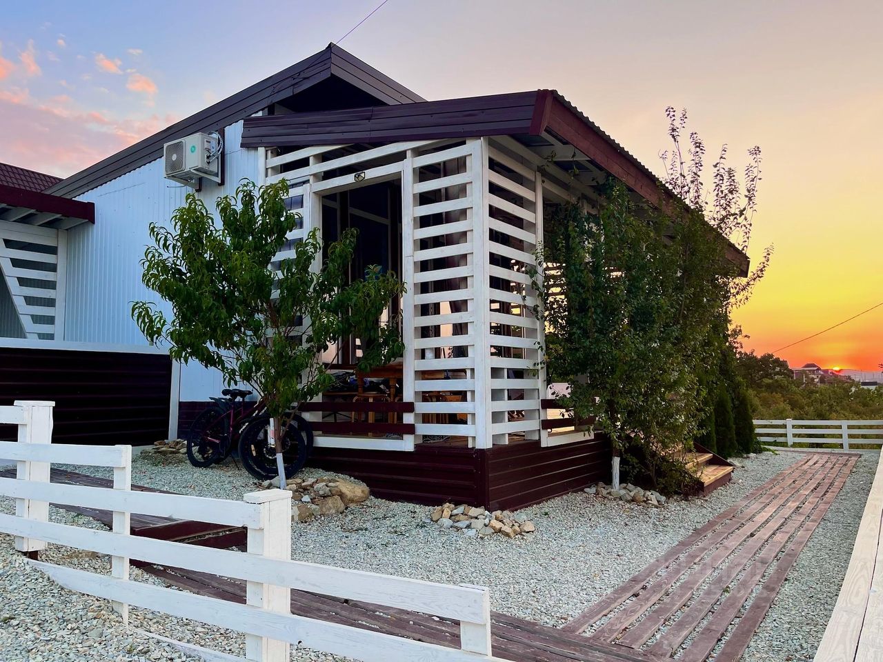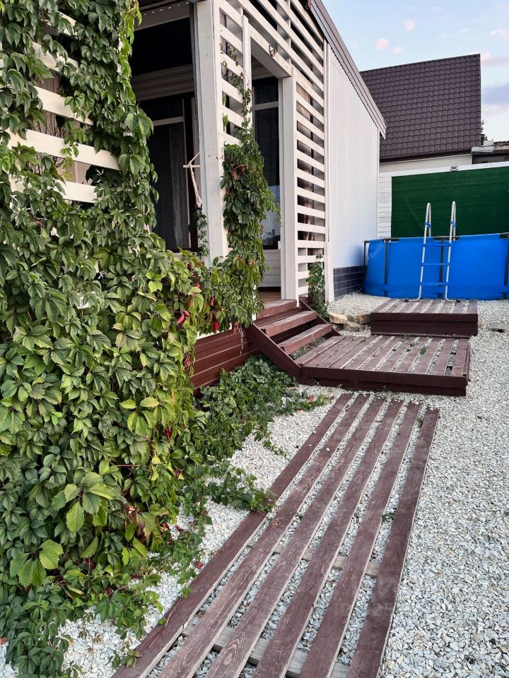 Внутри дома две светлые спальни и функциональная кухня-студия. Терраса оборудована подогреваемой купелью (нагревает до +45), на территории предусмотрена удобная беседка и мангальная зона для приятных вечеров с семьёй и друзьями.