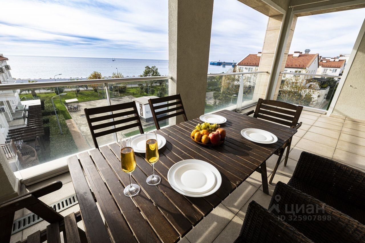 Сдаются просторные и стильные 3-х комнатные апартаменты на первой линии у моря, с прямым видом на море и Кавказские горы из всех окон — редкое сочетание уюта, приватности и впечатляющих видов в самом сердце Имеретинской бухты.