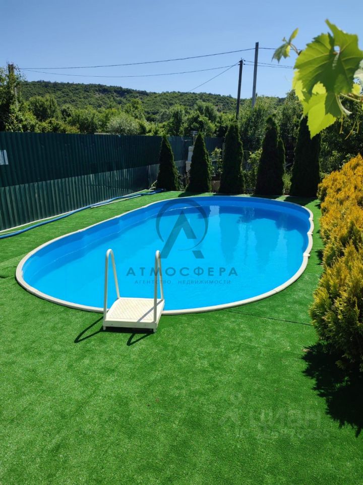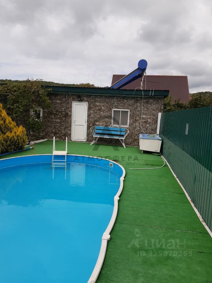 ЗЕМЕЛЬНЫЙ УЧАСТОК: 10 сот, на котором расположено - два гостевых дома со всеми удобствами (кондиционеры, телевизоры, душ, туалет), дровяная баня, капитальный бассейн 7,30 на 3,70 (со всем оборудованием), подсобные помещения: мастерская, кладовка, дровяник, летний душ, оборудованная летняя кухня (холодильник, газ. плита, микроволновка) . Так же растут плодово-ягодные растения: черешня, вишня, инжир, хурма, виноград, сливы и др. Дорожки выложены тротуарной плиткой, вдоль которых высажены розы.