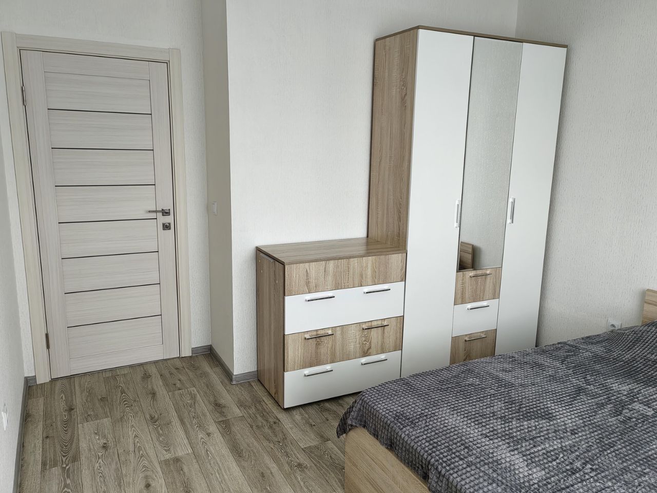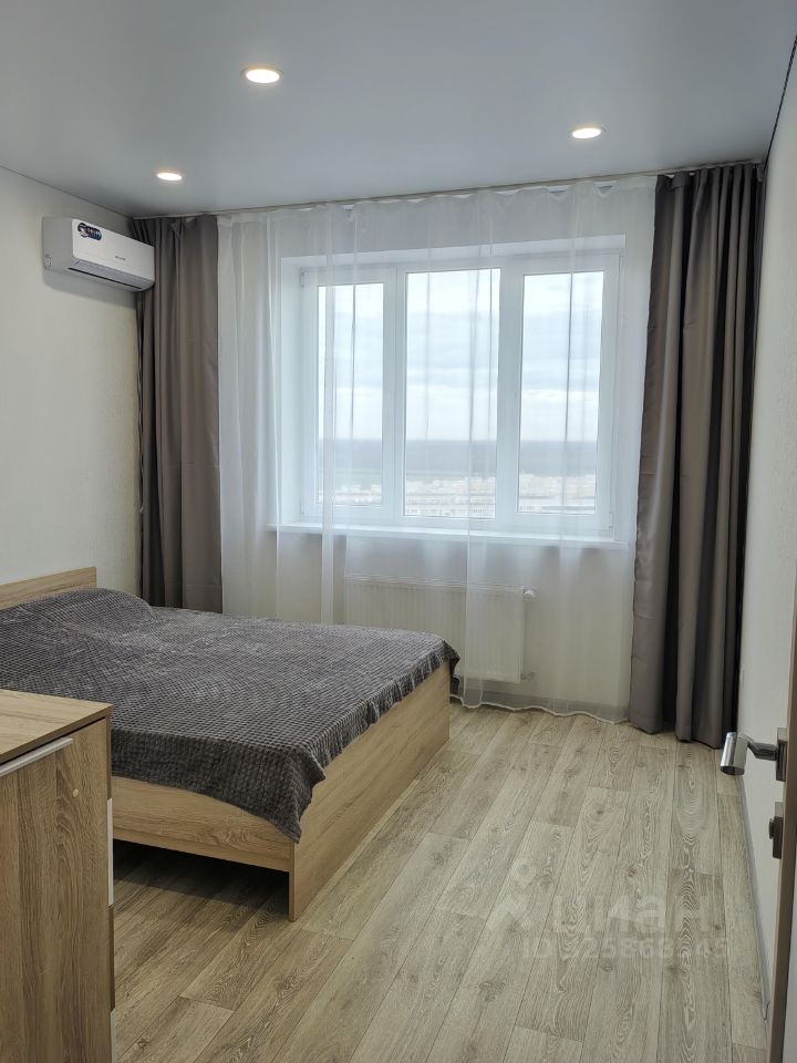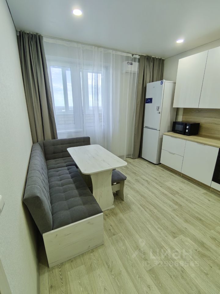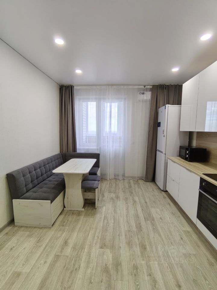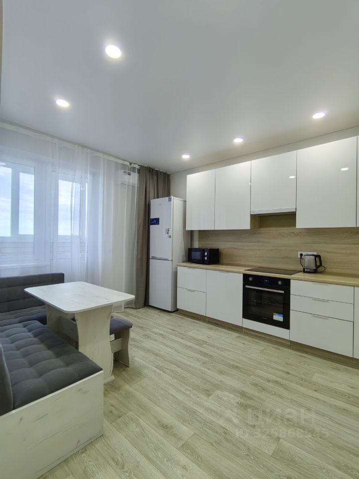 Хороший ремонт, есть вся необходимая мебель и техника (в том числе микроволновка, пылесос, утюг, гладильная доска, сушилка для белья). Квартира теплая, с удачным расположением окон - с видом на город, парковку, детский сад, школу, вечером - на закат.