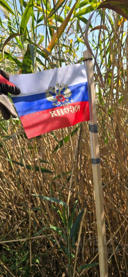 Земельный участок отмечен 4 флагами : Главный Флаг Триколор - Флаг РОССИИ.