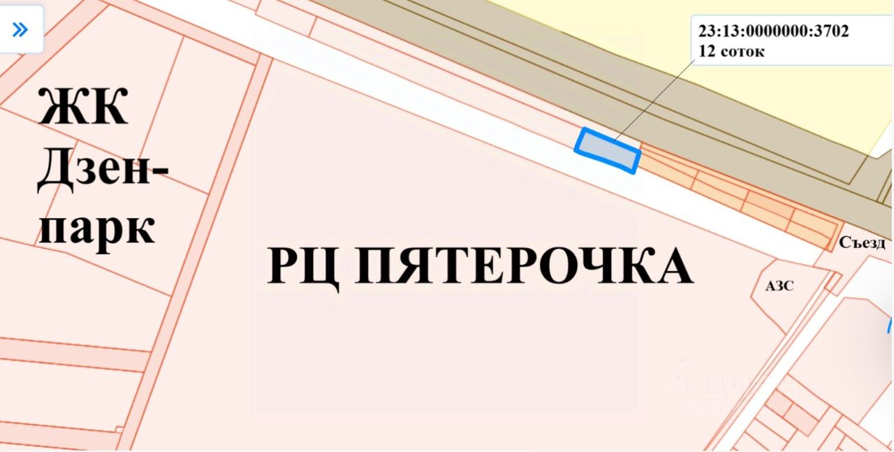 Участок под Коммерции, Хорошие возможности для подъездных путей участка ( заезд на участок через внутрипоселковые дороги ведущие на Дзенпарк будущая городская дорога под кадастровым номером 23:13:1001187:1754 и 23:13:1001187:1855 - улица Минометчиков. - А ТАКЖЕ второй заезд через центральный Въезд в Марьянскую со стороны Газовой заправки)