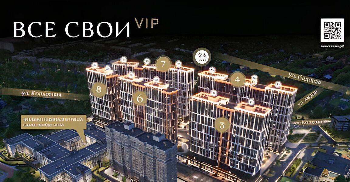 Расположено на минус первом этаже в ЖК бизнес класса - Все свои VIP, по адресу ул. Колхозная, дом 5/2, кор. 2 (строительный адрес литер 8).