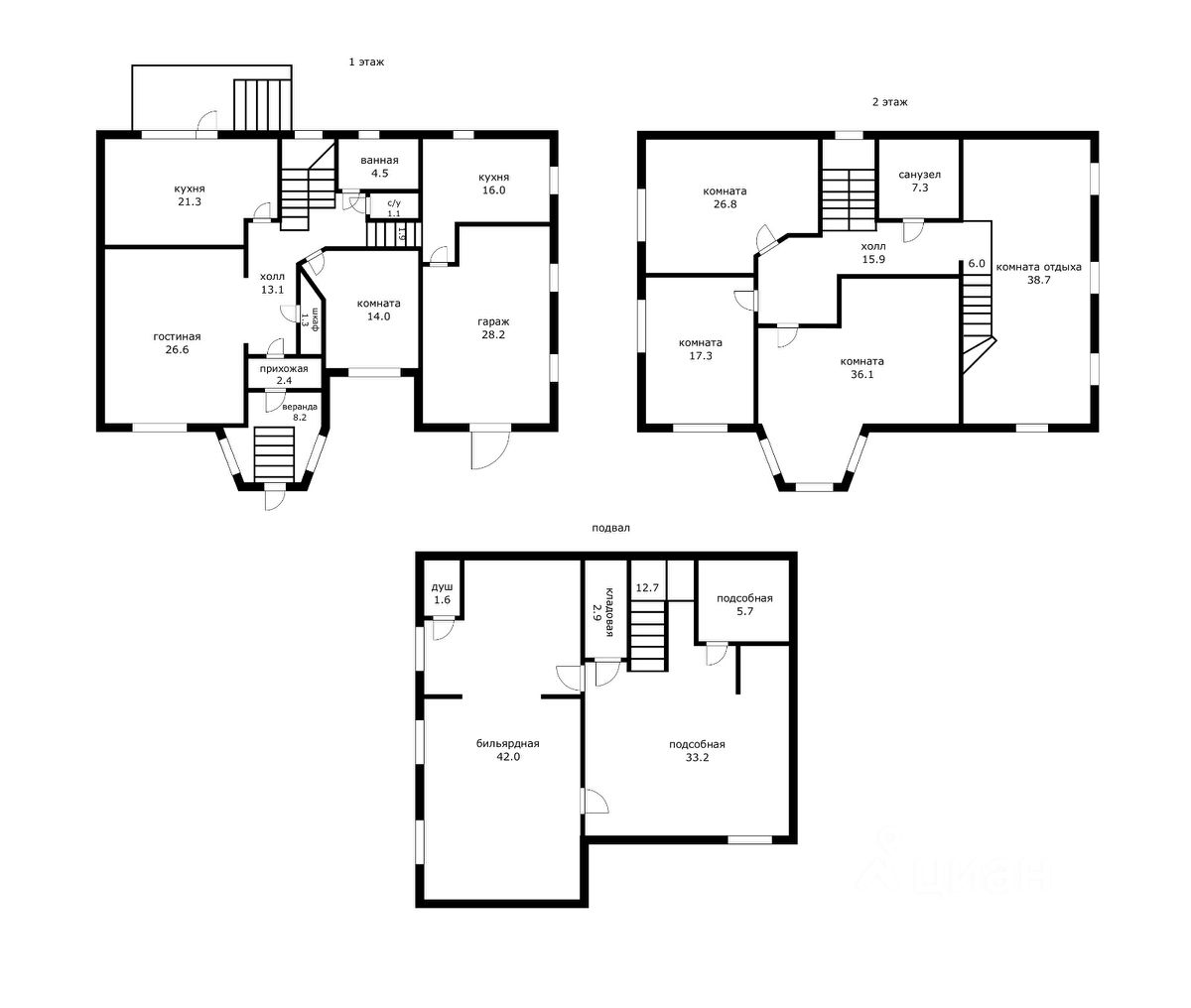Цокольный этаж: Сухие помещения Готовая чаша под бассейн Возможность обустройства бани или хамама