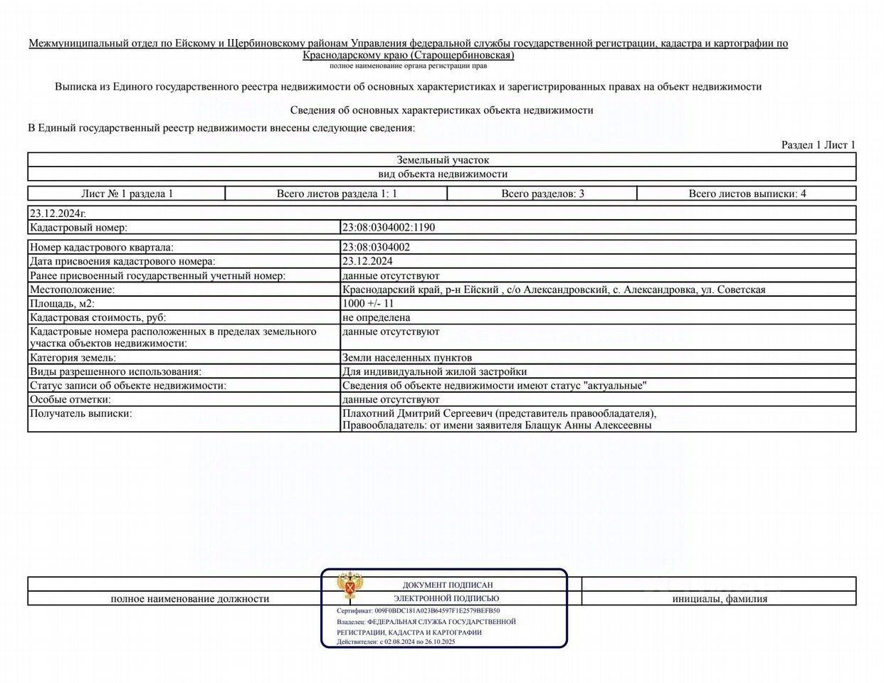 Ровный участок, заезд с хорошей асфальтированной дороги, инфраструктура вся рядом, по меже электричество, водопровод, газ, ближайший пригород Ейска, удобное сообщение с городом, есть сетевые магазины, школа, детский сад.