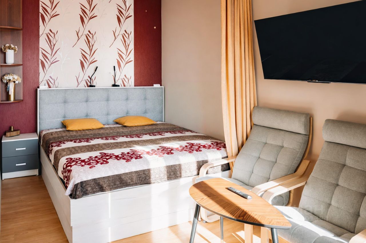 Квартира полностью укомплектована мебелью и бытовой техникой, есть вместительная кладовая для вещей — всё готово для спокойного и комфортного проживания.