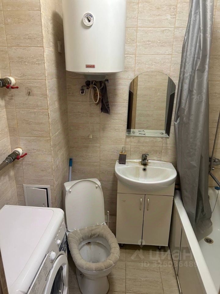 В квартире сделан косметический ремонт, она полностью готова для комфортного проживания. В комнате и на кухне есть вся необходимая мебель. Из техники в вашем распоряжении: кондиционер, холодильник, телевизор и стиральная машина. Санузел совмещенный, оборудован и ванной, и душевой кабиной, что добавляет удобства.