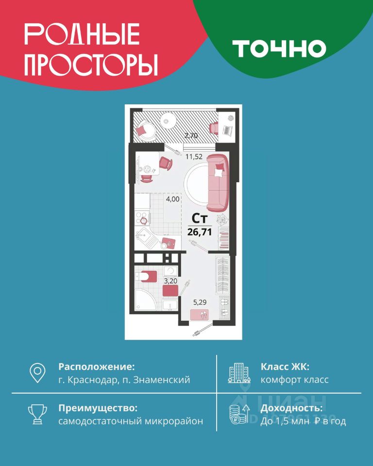 продам 1-к квартира4 540 700 ₽
