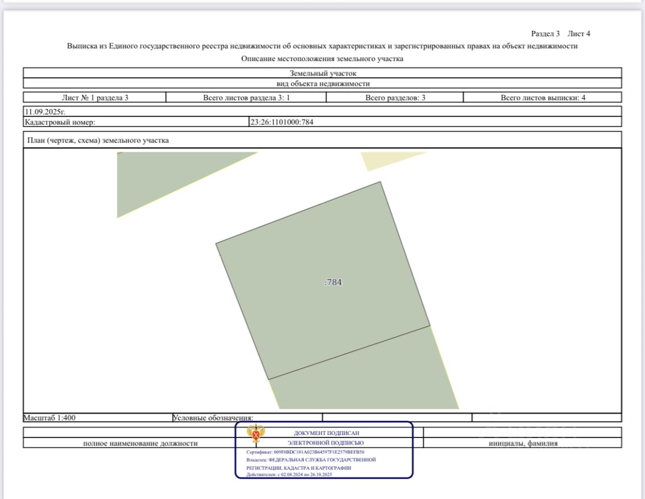 Кадастровый номер: 23:26:1101000:784