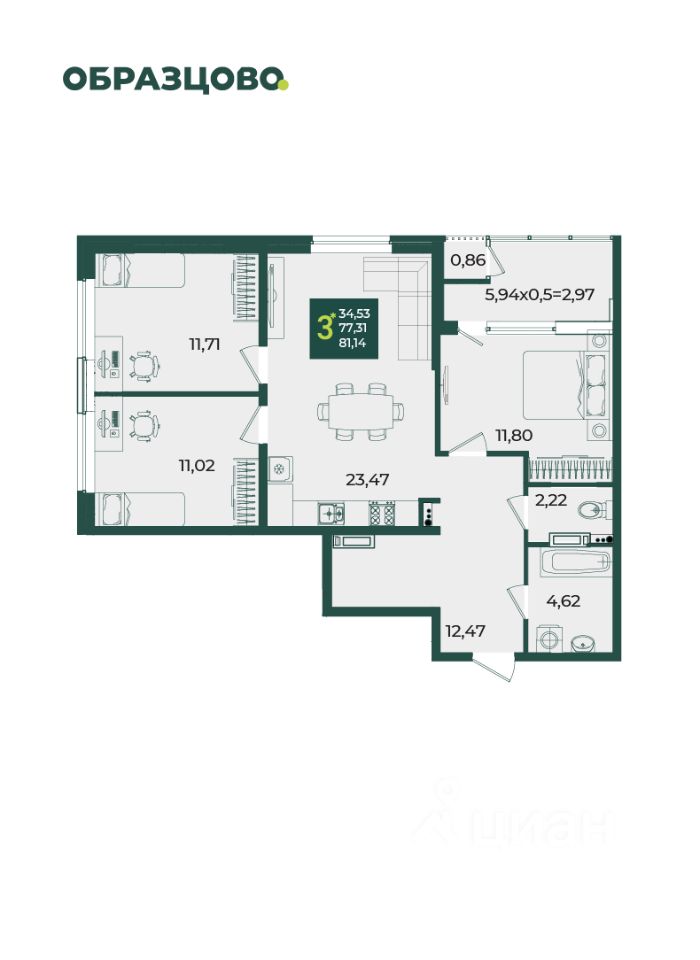 Общая площадь81,14 м2
