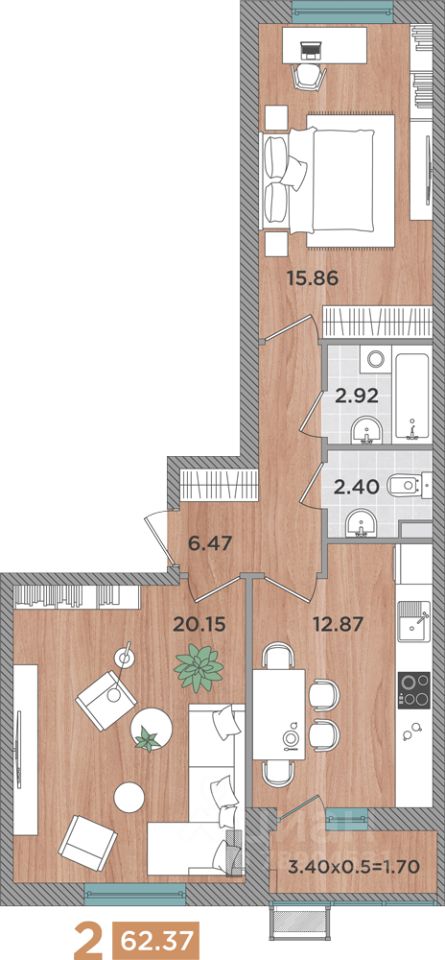 Общая площадь62,37 м2