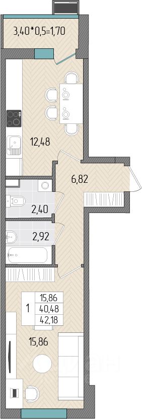 Общая площадь42,18 м2