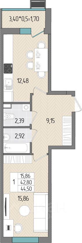 Общая площадь44,5 м2