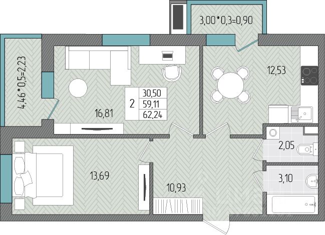 Общая площадь62,24 м2