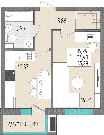 Общая площадь35,29 м2