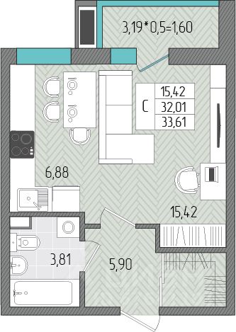 Общая площадь33,61 м2