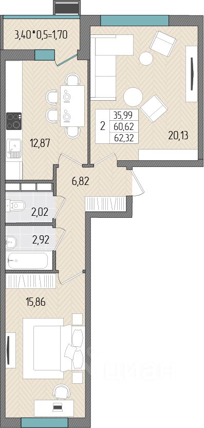 Общая площадь62,32 м2