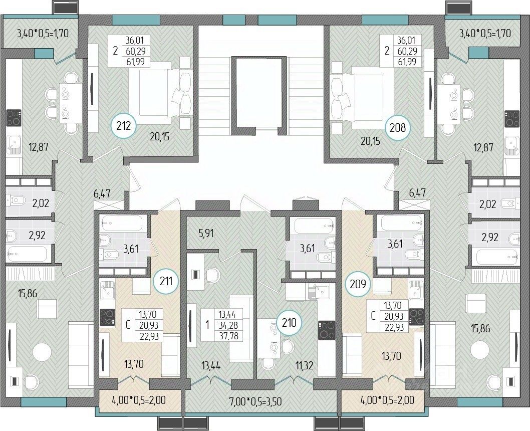 Общая площадь61,99 м2