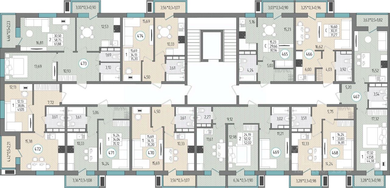 Описание комплекса ''Сады у моря'' Месторасположение: г. Темрюк, ул. Дальняя, 30 Комплекс состоит их трех 8-этажных домов, каждый дом имеет подземный технический этаж. Литеры 1 и 2 состоят из 10 подъездов. Литер 1 и 2 построены и введены в эксплуатацию Литер 3 9-ти подъездный Планируемый срок получения Застройщиком разрешения на ввод в эксплуатацию многоквартирного дома 01.12.2026 года. Срок передачи застройщиком объекта долевого строительства участникам долевого строительства не позднее 31.12.2026 года. Дома состоят из прямых и поворотных секций. Дом имеет полузамкнутый двор, в форме ''карэ''. Территория жилого комплекса имеет дворы со спортивными и детскими площадками.