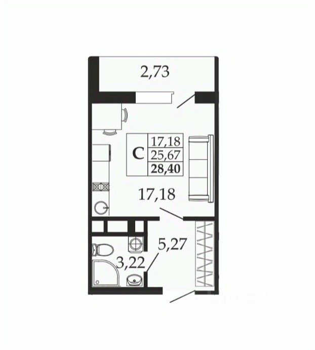 Общая площадь28,4 м2