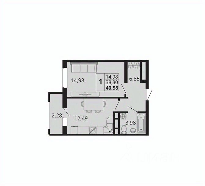 Общая площадь40,58 м2