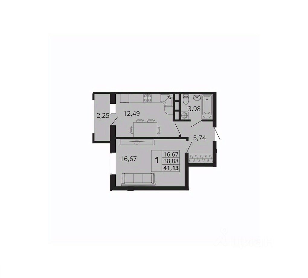 Общая площадь41,13 м2