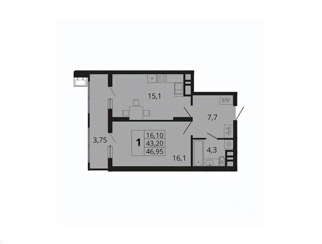 Жилая площадь16,1 м2