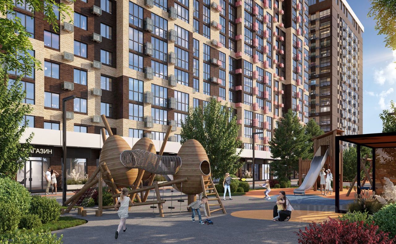 Крутая комплексная застройка территории с развитой инфраструктурой - на территории комплекса расположены школа на 1550 мест, 3 детских сада на 800 мест, поликлиника и частные клиники. На первых этажах домов расположены коммерческие помещения.