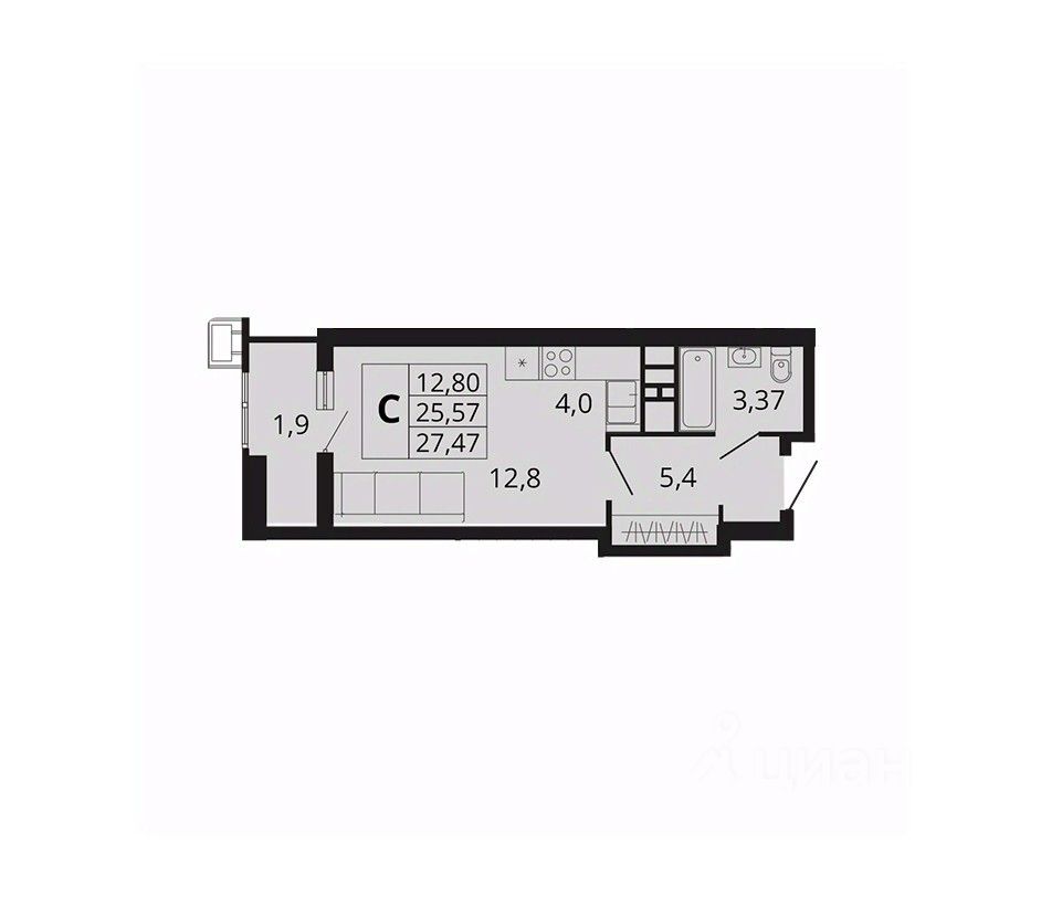 Общая площадь27,47 м2