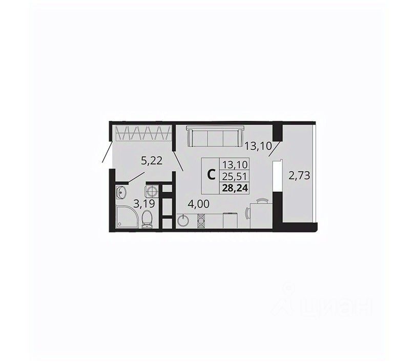 Общая площадь28,24 м2