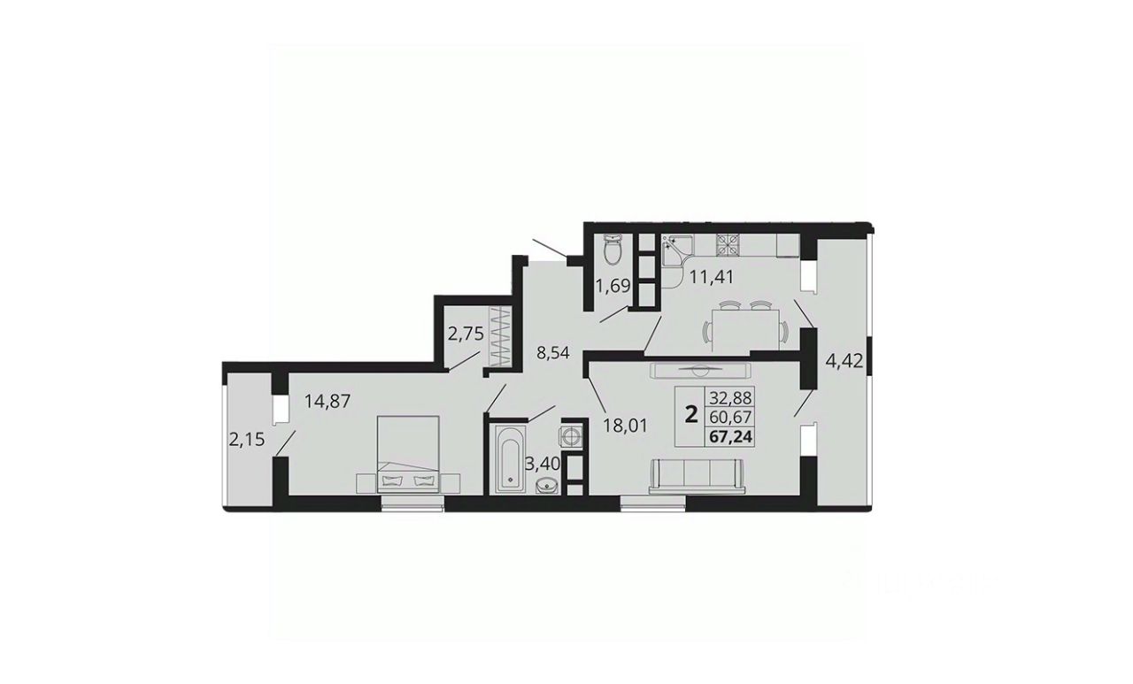 Общая площадь67,24 м2