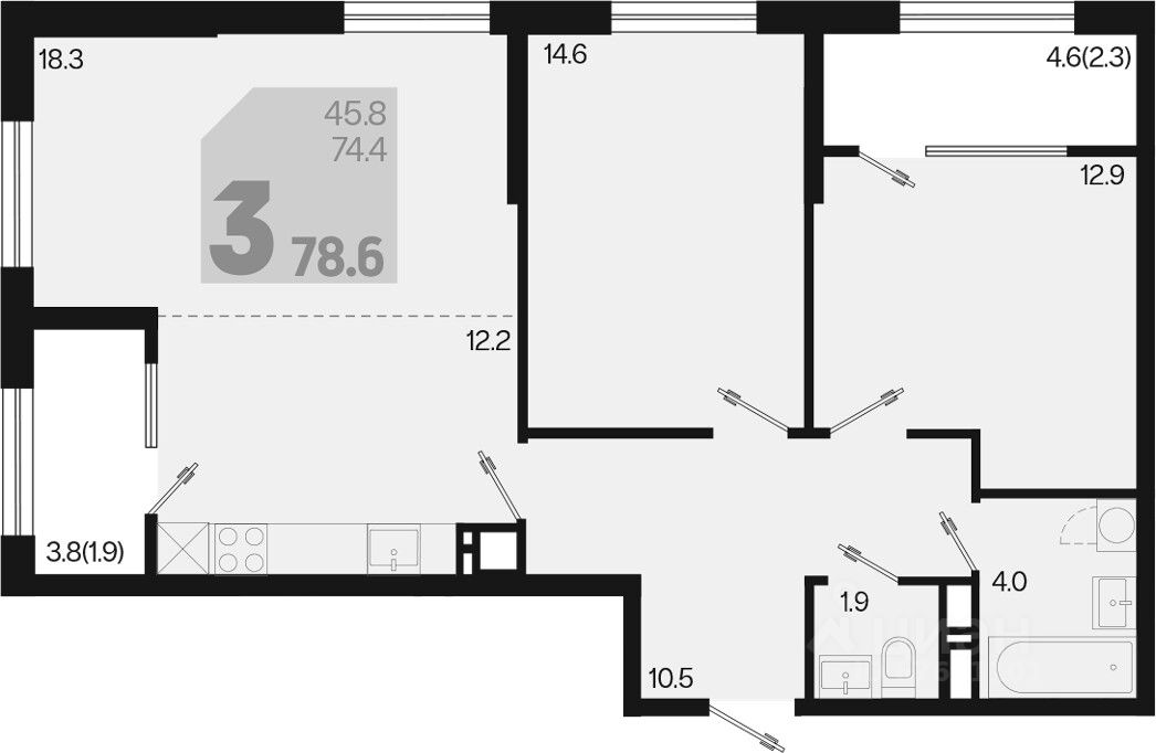 Общая площадь78,6 м2