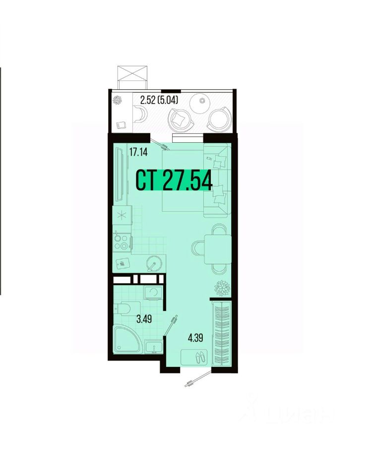 Общая площадь27,54 м2