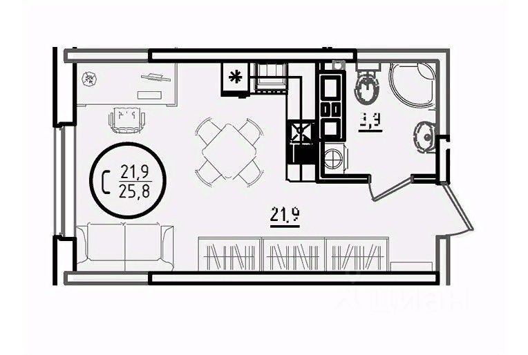 Общая площадь25,8 м2
