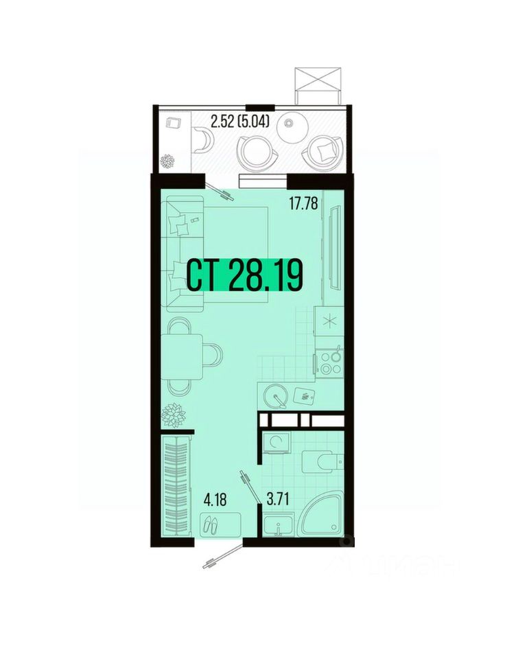 Общая площадь28,19 м2