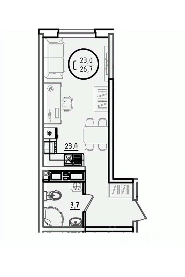 Общая площадь26,7 м2