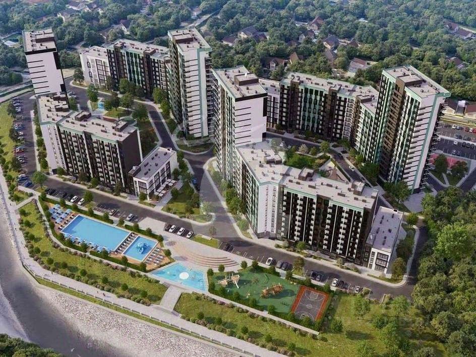 Жилой комплекс находится прямо на берегу реки Небуг, а из окон открываются живописные виды на море и горы.